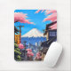 A small Tokyo Street with the view of Mt Fuji in the distance. AI Anime style generated art.