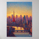 Tokyo Tower Pointillism Skyline Sunset Art Poster