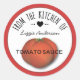 Une jolie tomate rouge mûre au centre fait un joli étiquette pour vos recettes maison. Avec une typographie fantaisiste et ludique.