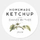 Editable Homemade Tomato Ketchup sticker featuring a watercolour tomato leaf illustration. Make your own canning labels for your favourite homemade tomato recipes. Perfect for preserves, homemade gifts or as kitchen pantry organiser.