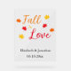 Chute en amour cadeaux d'évènements personnalisés avec palette de couleurs d'automne rouge, orange et jaune avec feuilles d'érable. Le texte peut être customisé pour un mariage, une douche nuptiale, un baby shower ou tout autre événement