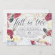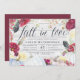 D'élégantes invitations rustiques pour les douches nuptiales d'automne ou d'automne sont accompagnées d'un arrière - plan en bois de fermier blanc avec une bordure de fleurs d'aquarelle bordeaux, de plumes de saumons et de citrouilles blancs. "Fall in love" apparaît en haut dans le script de calligraphie chic en lettres. Personnalisez avec votre douche nuptiale et les détails du registre sous le riche lettrage bleu marine.