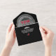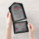 Gothic Tombstone Halloween all in one Wedding invitations that include the wedding info and RSVP postcard that your guests tear off and send. Envelopes are not needed. Features a cracked granite tombstone, skeleton hands and heart, red roses and gothic winged skull in colours of red, black and white. Great victorian feel. Perfect for the couple who weds on Halloween or the day of the dead!