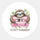 Tomorrow Funny Sloth Classic Round Sticker