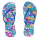 Robin's Egg Blue and Fuchsia Spin Art 3987 Flip Flops Captivant abstrait spin art conçu paire de tongs avec des tons colorés de bleu, rose et jaune. Par celeste@khoncepts.com