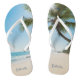 C'est une journée de flip flop ! Prenez ces flip flops pour vous-même ou ils font aussi un grand cadeau. Il y a une scène de plage calme avec l'océan et le ciel bleu. Il y a les branches d'un grand palmier sur la plage de sable blanc. Personnalisez avec votre nom. Découvrez les nombreux autres modèles de plage que nous avons dans notre magasin.