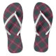 Flip flops avec le tartan Clan Crawford, un motif écossais traditionnel en plaid dans les tons rouge foncé et vert de forêt aux accents blancs.