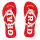 Les tongs rouges et blancs - ou de toute couleur - personnalisés avec le nom du diplômé et l'année de remise des diplômes sont amusants à porter pour votre fête de remise des diplômes ou de célébration ou à offrir en cadeau amusant. Sélectionnez les tailles hommes ou femmes, changez les sangles, la couleur des sangles et des pieds, aussi! Plus de couleurs faites pour vous dans notre magasin.