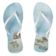 Jolie scène de plage tongs, avec des graphiques d'une plage de sable et des coquillages. Customisez d'ajouter du texte à cette paire tropicale de chaussons d'été.