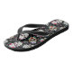 Un flip flop coloré pour les festivités du Jour des Morts, avec une variété de crânes à sucre décoratifs avec des accents de fleur et tourbillonnants sur un arrière - plan noir en option. Cherchez ID725 pour voir d'autres choix de couleurs et produits avec ce motif amusant.