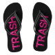 Tongs amusantes pour les "filles de la campagne" qui aiment vivre bruyamment et avec fantaisie ! Célébrez cette pauvreté blanche / poubelle avec un texte "déchets" glamour dans le look de paillettes roses épaisses sur fond noir,