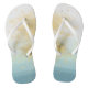 Des tongs somptueux avec des rayures d'ombre bleu océan et des éclats de peinture dorée étincelants conçus pour évoquer les pensées d'une journée de détente à la plage avec de l'eau bleue et des orteils de sable. Parfait pour les mariages de plage et de destination, une croisière, vacances tropicales et voyage.