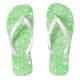 Tongs modernes et lumineuses imprimées d'un motif élégant de style bo-ho chic avec des volutes et des fleurs de paisley. Motif frais vert et blanc. Tongs qui font une déclaration de mode pour les amoureux de la plage, les filles surfeuses, les femmes modernes, les voyageuses et les sportives. Offrez-vous dès aujourd'hui une paire de ces tongs super élégantes.