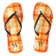 élégant monogramme tartan à carreaux orange jaune flip flops, monogramme tartan à carreaux personnalisé flip flops.