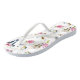 Flip Flops pour elle avec un joli design de vache sur un arrière - plan blanc avec des fleurs roses et des faux éclats colorés. Merci à Creative Fabrica pour certains des éléments du design.