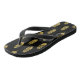 Des tongs avec un élégant motif récurrent de plumes dorées glamour sur un arrière - plan noir élégant. Une expression élégante de l'individualité.