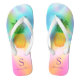 Créez des sandales tropicales uniques pour les vacances d'été ou la fête de la piscine de plage personnalisées avec vos initiales et nom qui présentent un design holographique style néon avec ananas. Le modèle facilite la personnaliser.