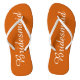 Offrez à vos serveuses d'accueil mariages ces tongs élégantes, qui sont une couleur orange brûlée et tendance, ainsi qu'un script blanc et stylisé, pour compléter votre schéma de couleurs mariage similaire. Sélectionnez la taille du pied avec d'autres options. Disponible dans de nombreux modèles de couleurs mariages de demoiselles d'honneur populaires.