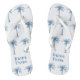 Ces tongs amusants à motifs de palmiers tropicaux avec les mots "Tribe de Mariée" en bleu (couleur de l'année 2020) sur un arrière - plan blanc sont les cadeaux de douche nuptiale parfaits pour une destination de plage tropicale ou mariage extérieur!