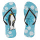 Tongs noël, noël, pingouin, fleurs, bleu,