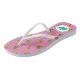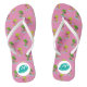 Flipflops rose cool et personnalisables avec petits palmiers et coucher de soleil sur le motif de mer plus votre monogramme. Vous pouvez modifier la couleur de l'arrière - plan et redimensionner le motif. Vous pouvez également ajouter du texte personnalisé. Juste un bon article pour la pause estivale.