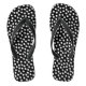 Ces tongs chic ont des pois blancs sur un arrière - plan noir.