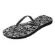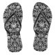 Tongs dans un vintage William Morris motif de jacinthes, tulipes et feuilles, dans les tons gris argenté / gris et blanc, sur un arrière - plan noir
