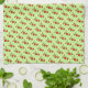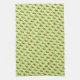 Little floral art print in reds, on crisp celery green hand towel for kitchen or bath.