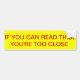 Too Close Bumper Sticker