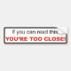 Too close bumper sticker