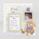 This sweet and whimsical birth announcement features a monogram and hand water coloured puppy with a purple bow, "2 Cute!" text, lavender diamond plaid background, rick rack and scalloped frames for a photograph and your baby's birth information. There is an opening for your baby's photograph and all birth information. Other colour versions available: pink & aqua. COORDINATING PRODUCTS AVAILABLE: BABY SHOWER INVITATION: SCRAPBOOK PAGE (SUITABLE FOR FRAMING): BABY OR SCRAPBOOK: