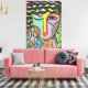 My colourful abstract portrait of a woman on OSB board printed on wrapped canvas