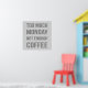 'Too Much Monday Not Enough Coffee' funny quote on a grey background.