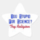 It's time to fight back against the religious fanatics who want to deny Science in favour of superstition. In blue letters "Too stupid for science?" answered in red letters "Try Religion."