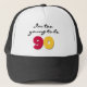 I'm too young to be 90! If the 90th birthday seemed to creep up on you, if you refuse to get any older, at least in spirit, or if you're looking for a great gift for the person turning 90 years old that can be used the entire year you'll love this black, red, and yellow text design.