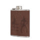 This cool flask features an original digital painting that captures the look of tooled brown leather with cowboys and bucking bronco's subtly carved in. A text field for your monogram or initials is waiting for you to customize it!
