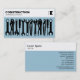 A business card template with a 0.6" (15.24mm) white top panel and space for a photo or image underneath. This version has been specifically designed with the construction industry in mind. However can also be customised for other uses. Company Name and Business type/Quote on the front top panel positioned to the left. The example logo used on this design is a symbol from one of the available symbol fonts. It can be kept as a decoration, cleared entirely or replaced with your own logo. NB you can also alter the decoration to a different style flag by adding any lowercase letter a-z. The same basic layout is repeated on the reverse side of the card but without the photo. The Name and Job title are on the left of top panel the same as the details on the front of the card. The Address, Telephony, Web and email details are in the lower area aligned to the right in the lower area. The lower area has a flat colour background which can also be customised.