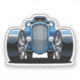 Hyper-stylized front-view toon hotrod with massive wheels, electric-blue shine, bold grille and powerful low-angle stance for a dynamic monster cartoon car look.