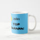 Tell them you are top with this fun mug. It has a cartoon drawing of a bright yellow banana with the words TOP BANANA! You can personalize it with your name, and change the words. The background is blue. The mug gives a touch of humour to your desk, the office, home or kitchen.