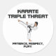 Karate Triple Threat slogan with Patience, Respect, Fury tagline for those from the novice level to black belt. T-shirts, sweatshirts, stickers, mugs, buttons, and other gifts.