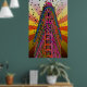 A whimsical, colourful, psychedelic view of the top of the New York City icon, the Flatiron Building. This one displays reddish/orange and yellow rays. It also comes in additional colour patterns.