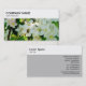 A business card template with a 0.6" (15.24mm) white top panel and space for a photo or image underneath. Available with a variety of attractive images or you can add your own image. Company Name and Business type/Quote on the front top panel positioned to the left. The same basic layout is repeated on the reverse side of the card but without the photo. The Name and Job title are on the left of top panel the same as the details on the front of the card. The Address, Telephony, Web and email details are in the lower area aligned to the right in the lower area. The lower area has a flat colour background which can also be customised. This template can be used as is or can be further customized. Aside from offering the opportunity to display photos of your products or images relevant to your business The photo area is particularly suitable to a variety of decorative images, photos from nature e.g. details of flowers and trees or even entirely abstract designs and decorative patterns etc. The template also offers plenty of space to add additional logos e.g. in the top right of the top panels.