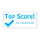 This inspirational rubber stamp design features the positive message "Top Score!" and a customized tutor's name. It also features a decorative check mark. It could be used by a teacher or educator when grading student work, to acknowledge that a student has done an exceptional job.