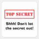 Surprise party envelope seal stickers featuring a red top secret stamp and black customizable text: Shhh! Don't let the secret out!
