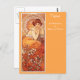 A postcard with an Art Nouveau illustration by Alphonse Mucha (1860-1939), titled Topaz. A portrait of a fashionable woman dressed in an orange gown. Part of the Precious Stones Series from 1900.