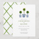 Elegant Hand painted watercolor boxwood topiaries in blue and white pot, Easter brunch and egg hunt invitations.