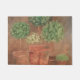 Various topiary in terra cotta pots on top of books. Background is an antique brown.