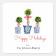 Hand-drawn watercolor 3 topiaries in blue & white vase Holiday square stickers.