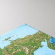 This detailed world map illustration features realistic topographic coloring that highlights Earth’s natural terrain and elevation. Continents are rendered in rich greens, browns, and tans to reflect vegetation, mountains, and deserts, while deep and shallow ocean blues add depth and contrast. The design offers a clean, informative, and visually striking representation of the planet, ideal for geography lovers, educators, and earth science enthusiasts.