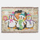 Topography and Penguins holiday throw blanket features three cute penguins in winter hats and scarves on a background of white with topography text, stars, and snowflakes, a strip of white dots on black, and an orange centre with white polka dots.